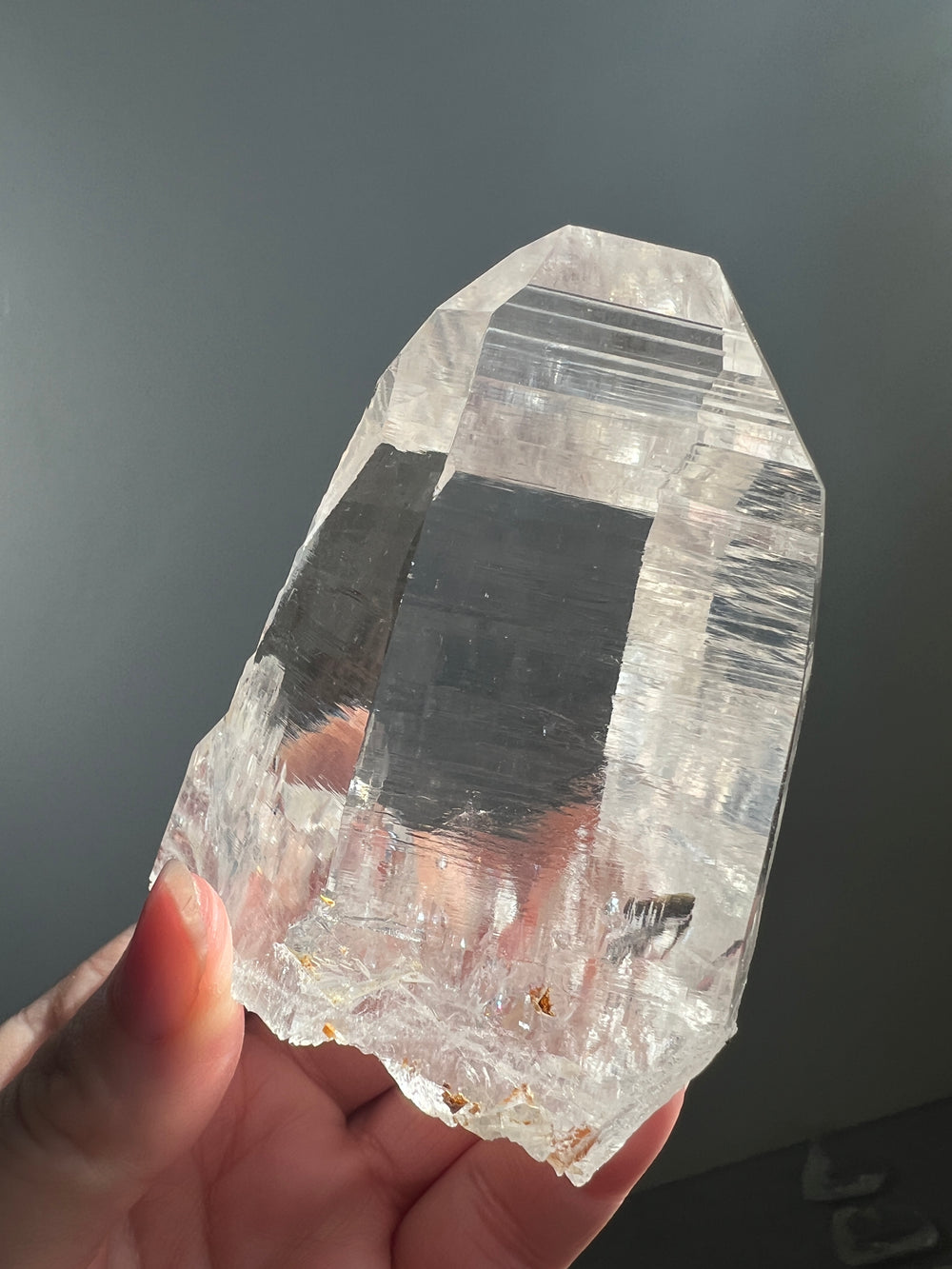This exceptional Colombian Lemurian Quartz comes from the La Belleza region of Santander, Colombia, a source renowned for producing some of the clearest quartz crystals in the world. These specimens are completely natural, unheated, and uncut beyond careful cleaning, each one a pristine example of high-altitude hydrothermal formation. Characterized by their extraordinary optic clarity, these crystals are free from inclusions and internal fractures. Distinctive horizontal striations along the sides mark them as true Lemurian growth habit, a feature caused by rhythmic layer-by-layer deposition during their formation. The natural luster, clean terminations, and precise geometry make these pieces highly sought-after by both collectors and connoisseurs of fine quartz.